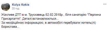 Пользователи в соцсети назвали имена погибших: Олег Краснопольский и Олег Райс. Отмечают, что, скорее всего, они были из Борислава.